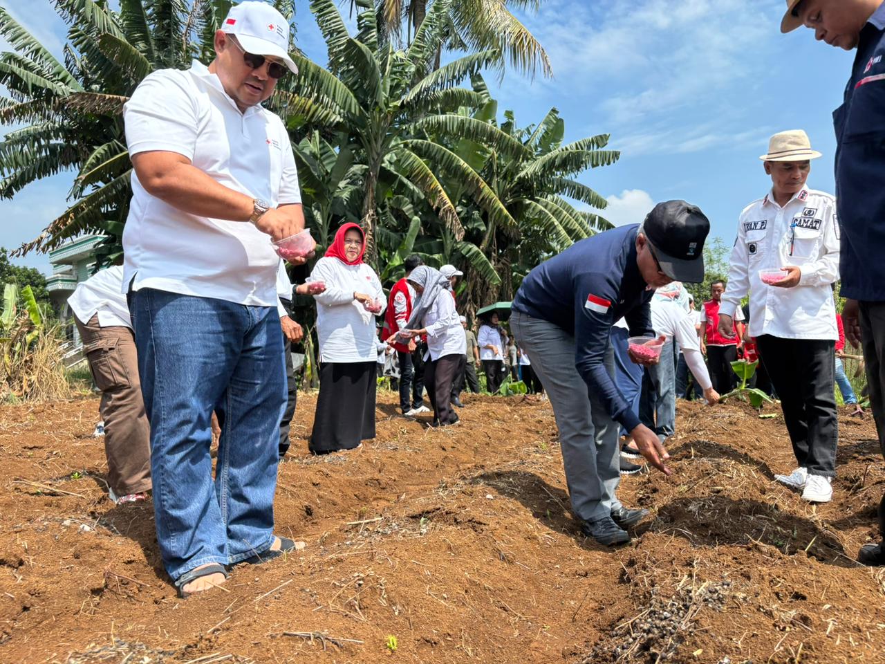 jurnalbogor.com – Jadi bagian dari misi kemanusiaan, Palang Merah Indonesia (PMI) Kabupaten Bogor lakukan penanaman pohon jagung, singkong, talas dan pisang, di Kampung Nanggela, Desa Nanggerang, Kecamatan Tajur Halang, Rabu (3/12/2025).