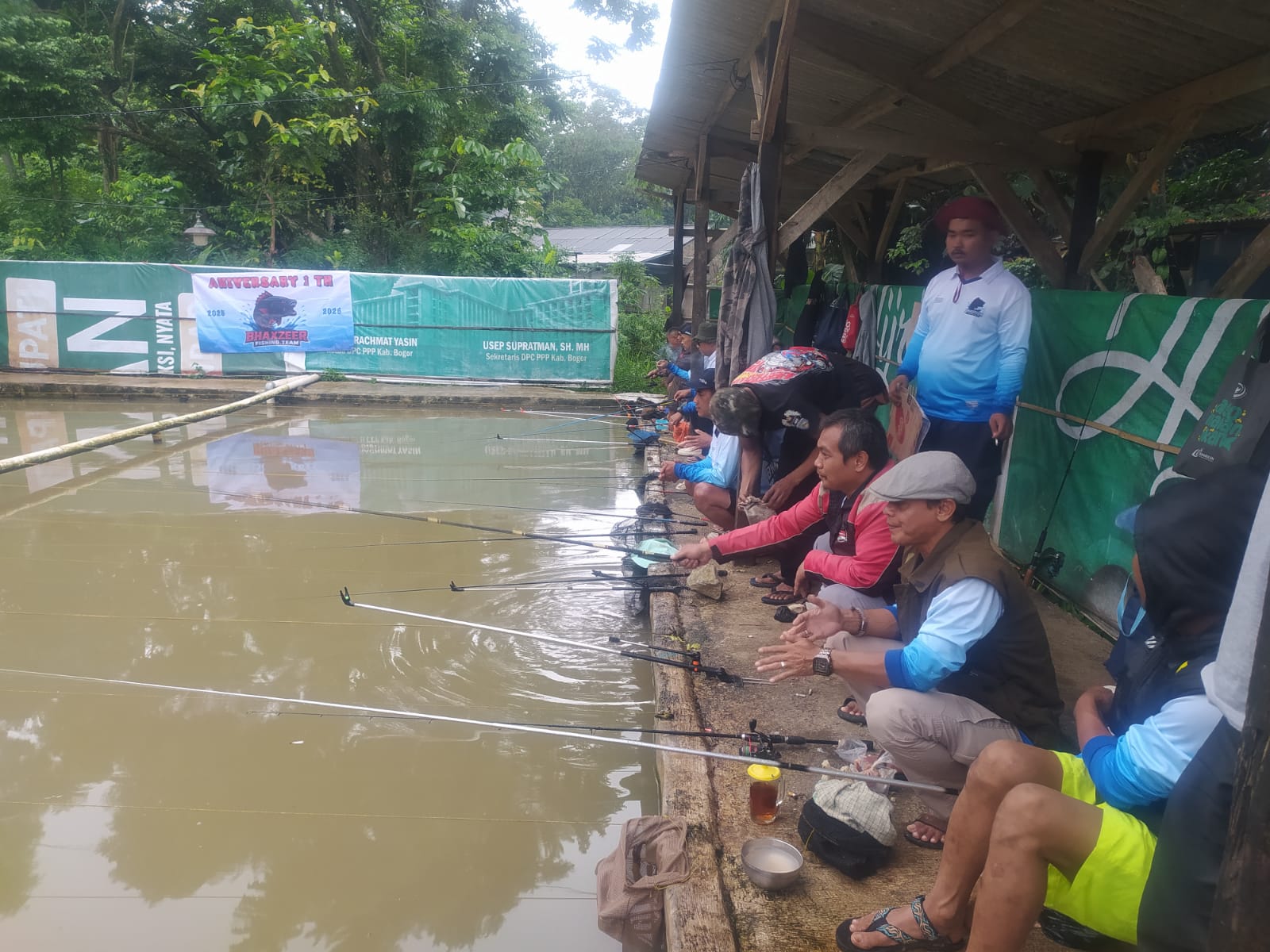 jurnalbogor.com – Bhaxzeer Fishing Team merayakan ulang tahunnya yang pertama dengan mancing bersama di Kenon Fishing Tanah Baru, Bogor Utara, Kota Bogor, Minggu (1/2/2026). Bhaxzeer Fishing Team merupakan komunitas mancing warga RW 09 Babakan Sirna, Tegallega, Bogor Tengah, Kota Bogor.