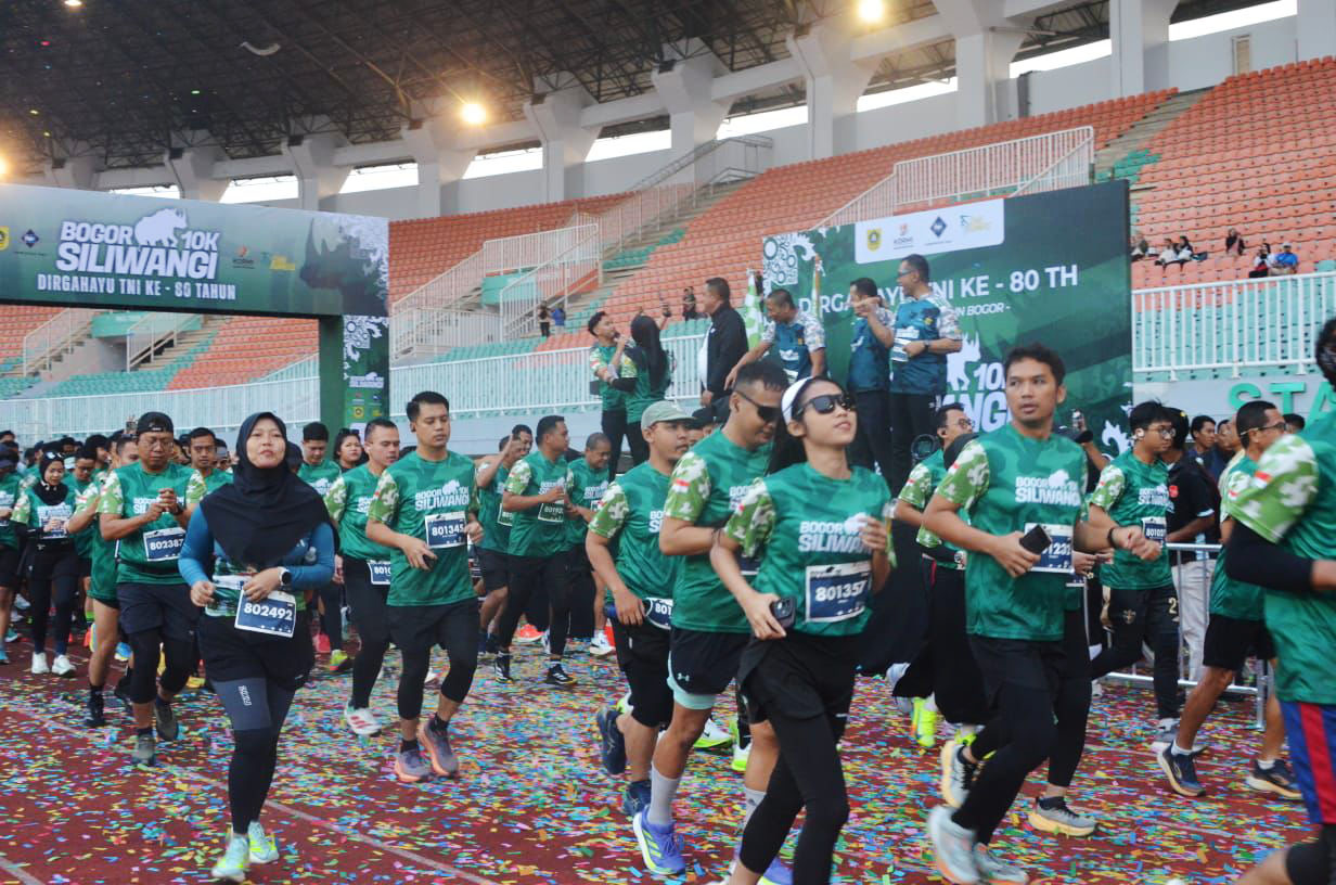 jurnalbogor.com – Dalam rangka memperingati Hari Ulang Tahun ke-80 Tentara Nasional Indonesia (TNI), Bupati Bogor Rudy Susmanto bersama Forum Koordinasi Pimpinan Daerah (Forkopimda) serta jajaran Pemerintah Kabupaten mengikuti kegiatan Bogor 10K Siliwangi Marathon, yang digelar pada Minggu pagi (12/10), start dan finis di Stadion Pakansari, Cibinong.