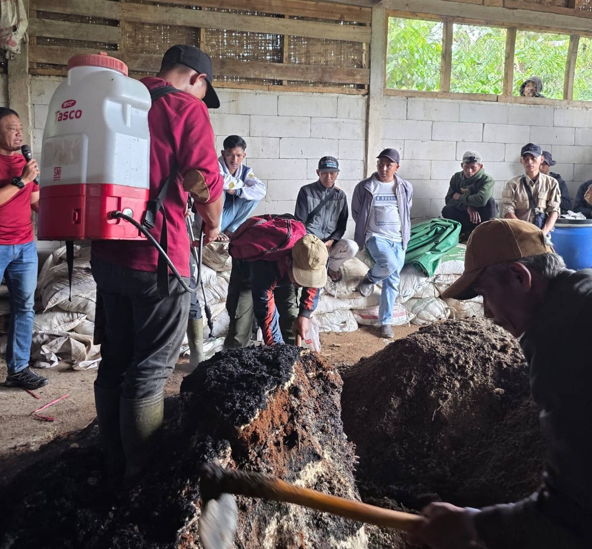 “Untuk memperoleh produksi yang maksimal, tidak harus pakai biaya mahal hanya untuk beli pupuk kimia, kita bisa memanfaatkan bahan-bahan yang ada di sekitar kita untuk pembuatan pupuk hayati, pupuk yang bisa kita gunakan pada fase vegetatif maupun generatif,” ungkap Andreas.
