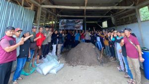 Para peserta terlebih dahulu menyimak pemaparan materi dari narasumber ahli sebelum melaksanakan praktik pembuatan pupuk. Salah satu narasumber, Andreas, menyebutkan bahwa para petani tidak harus mengeluarkan biaya mahal untuk pembelian pupuk kimia, sebab terdapat cara lain dengan biaya terjangkau.