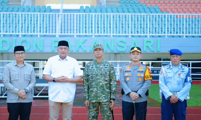 jurnalbogor.com – Ketua DPRD Kabupaten Bogor, Sastra Winara bersama Bupati Bogor, Dandim 0621 dan Kapolres Bogor saat meninjau persiapan pelaksanaan salat Idul Fitri di Stadion Pakansari, Cibinong.