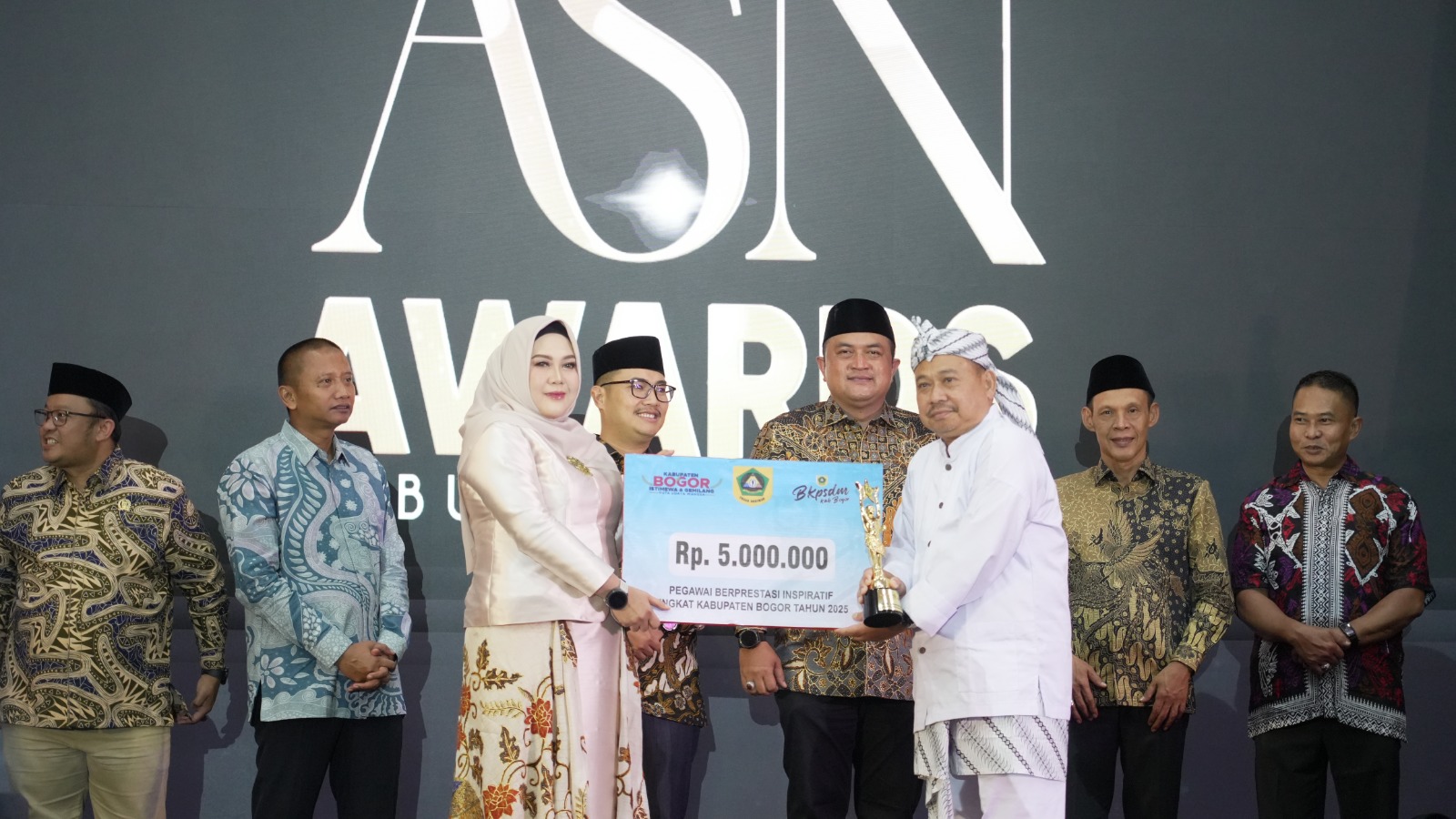 ASN Award 2025 memberikan penghargaan dalam delapan kategori dan menetapkan 20 ASN sebagai penerima penghargaan berdasarkan hasil penilaian independen. Pemerintah Kabupaten Bogor berharap penghargaan ini dapat memotivasi seluruh ASN untuk terus berkinerja tinggi, berintegritas, dan berorientasi pada pelayanan masyarakat.