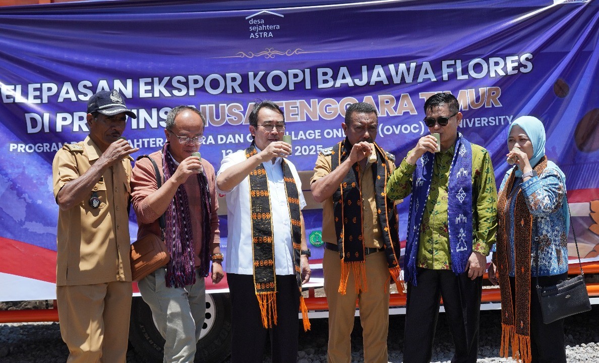 jurnalbogor.com – Sinergi antar Direktorat Pengembangan Masyarakat Agromaritim IPB University dan PT Astra International Tbk sukses mengantarkan kopi Arabika Bajawa ke mancanegara secara mandiri untuk pertama kalinya. Keberhasilan pendampingan pengembangan masyarakat melalui implementasi program Desa Sejahtera Astra (DSA) dan One Village One CEO (OVOC) IPB ini ditandai dengan dilepasnya 15 ton kopi Arabika Bajawa senilai Rp1,56 miliar untuk diekspor ke Bangkok, Thailand. Acara pelepasan ini diselenggarakan di Balai Desa Mukuvoka, Kecamatan Bajawa, Kabupaten Ngada, Provinsi Nusa Tenggara Timur pada Senin (13/10/2025).