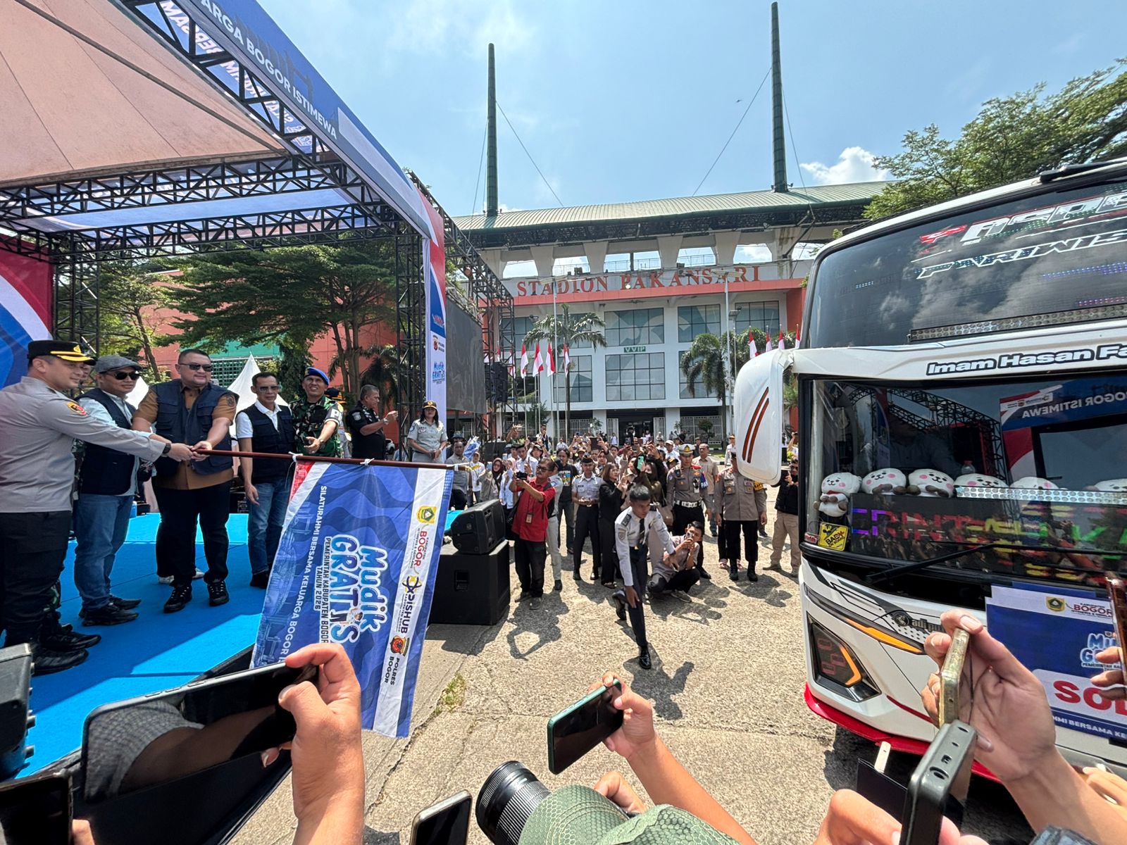 jurnalbogor.com – Pemerintah Kabupaten (Pemkab) Bogor berkolaborasi bersama Polres Bogor beserta swasta memberangkatkan 77 bus 4.000 warga Kabupaten Bogor untuk mudik gratis Tahun 2026.