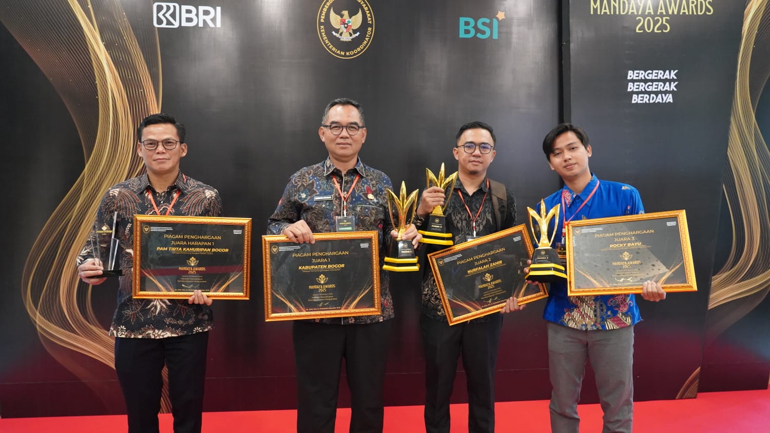 Pada Mandaya Awards 2025 ini, selain Pemkab Bogor, sejumlah pihak dari Kabupaten Bogor juga turut menerima penghargaan, di antaranya. PDAM Tirta Kahuripan meraih Juara Harapan 1 kategori Badan Usaha, Nurfalah Zahir memperoleh Juara 2 kategori Lifetime Contribution, dan Rocky Bayu meraih Juara 3 kategori Lifetime Contribution.