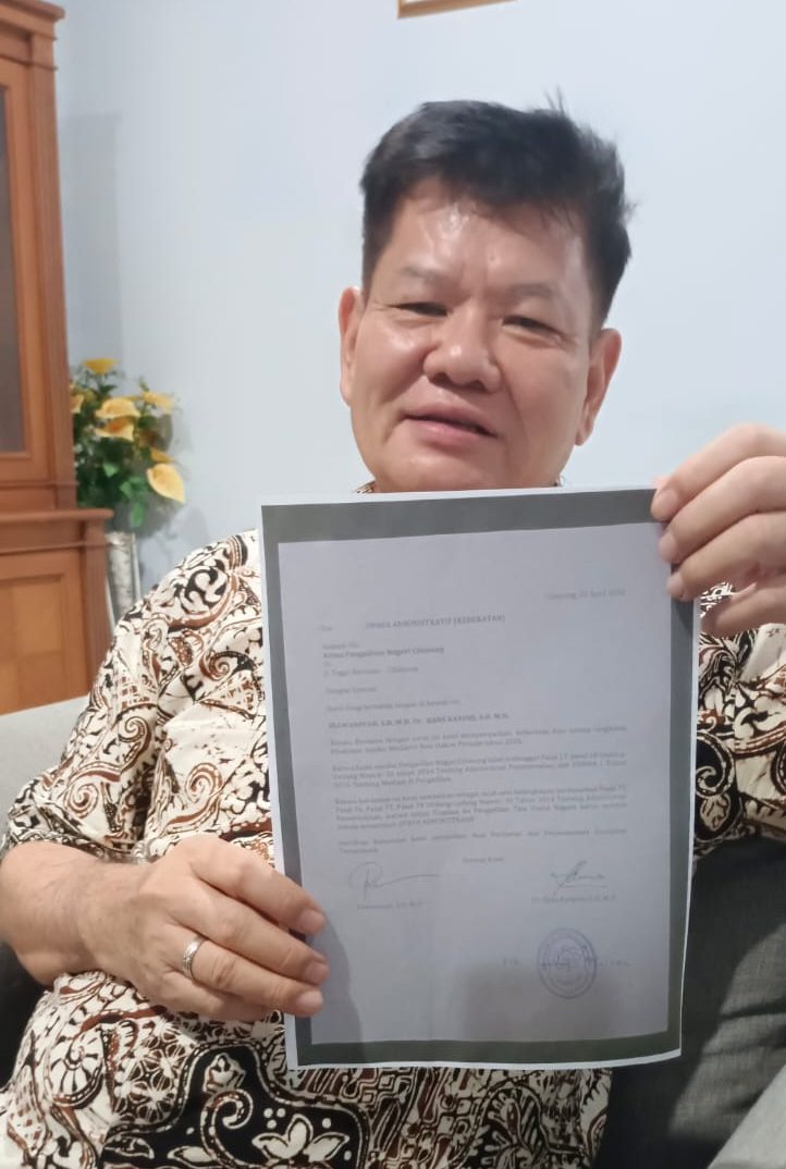 Ia juga mengungkapkan bahwa saat ini dirinya tengah menempuh upaya hukum atas persoalan tersebut melalui Pengadilan Tata Usaha Negara Bandung.