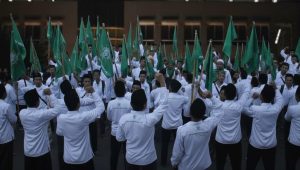 Aksi yang berlangsung sejak pukul 10.00 WIB itu diwarnai dengan orasi dan pembacaan pernyataan sikap dari Dewan Koordinasi Nasional (DKN) Laskar Santri Nusantara.