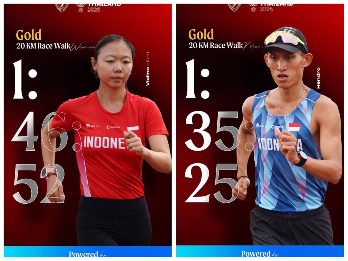 jurnalbogor.com – Prestasi membanggakan ditorehkan dua atlet atletik jalan cepat Indonesia asal Kabupaten Bogor, yakni Hendro Yap dan Violine Intan, pada SEA Games 2025 yang berlangsung di Run Happy and Healthy Bike Lane, Bangkok-Thailand, pada Minggu (14/12/2025) kemarin.