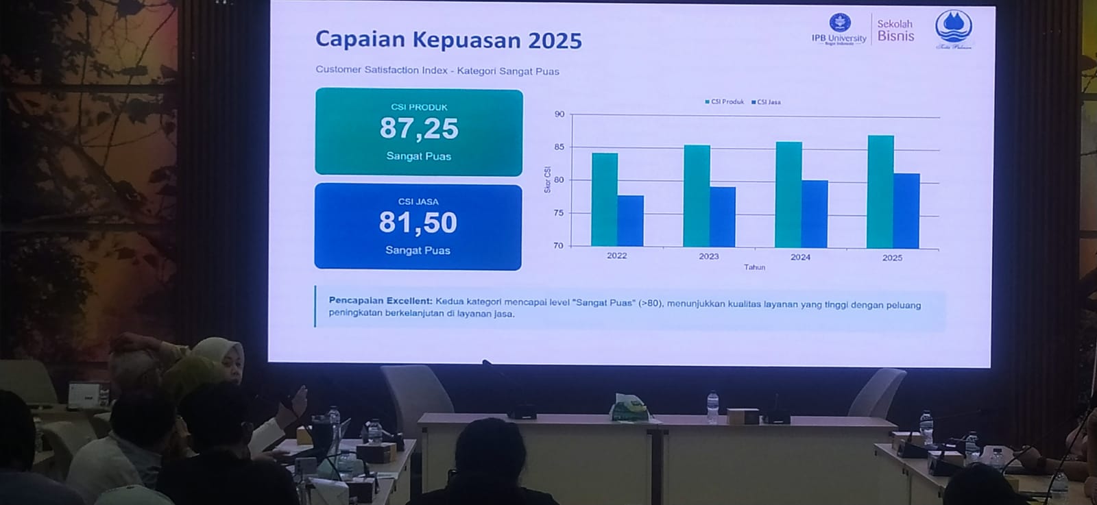 Nilai CSI Produk tercatat sebesar 87,25, sedangkan CSI Jasa mencapai 81,50. Capaian ini menunjukkan peningkatan signifikan dibandingkan tahun sebelumnya, khususnya pada aspek jasa, sekaligus menandai keberhasilan perusahaan dalam memulihkan dan meningkatkan kualitas layanan setelah dinamika penurunan indeks pada periode sebelumnya.